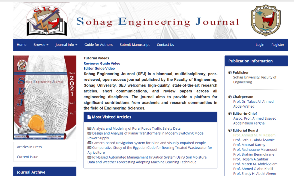 هي مجلة تصدر عن كلية الهندسة جامعة سوهاج بشكل دوري “نصف سنوي” في شهري مارس وسبتمبر . ويرأس تحريرها عميد الكلية وتضم المجلة فى هيئة تحريرها نخبة من العلماء فى جميع تخصصات المجلة