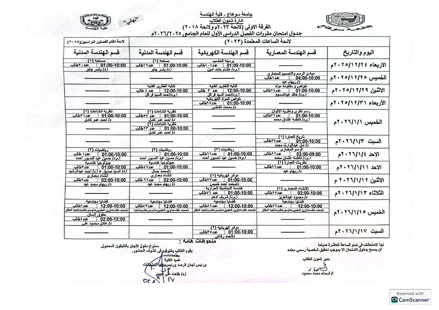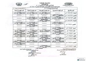 جدول امتحان مقررات الفضل الدراسي الأول للعام الجامعي 2025-2026م