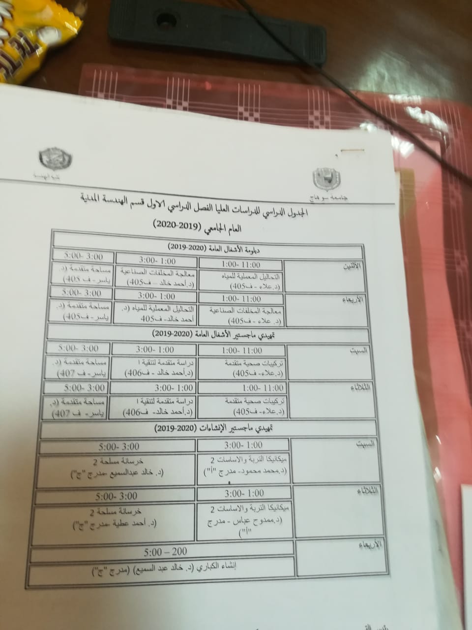 تحت اشراف  ا.د/احمد محمد قاسم  عميد كلية الهندسة و ا.د/ محمد محمود حسين وكيل كلية الهندسة للدراسات العليا تم اعتماد جدول الدراسات العليا للعام الجامعى ٢٠١٩-٢٠٢٠ م لجميع المراحل (الدبلومه – الماجستير) لقسمى الهندسة المدنية والهندسة الكهربائية.