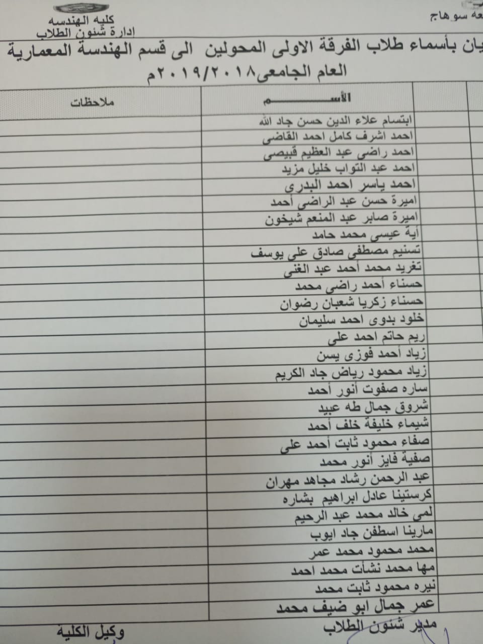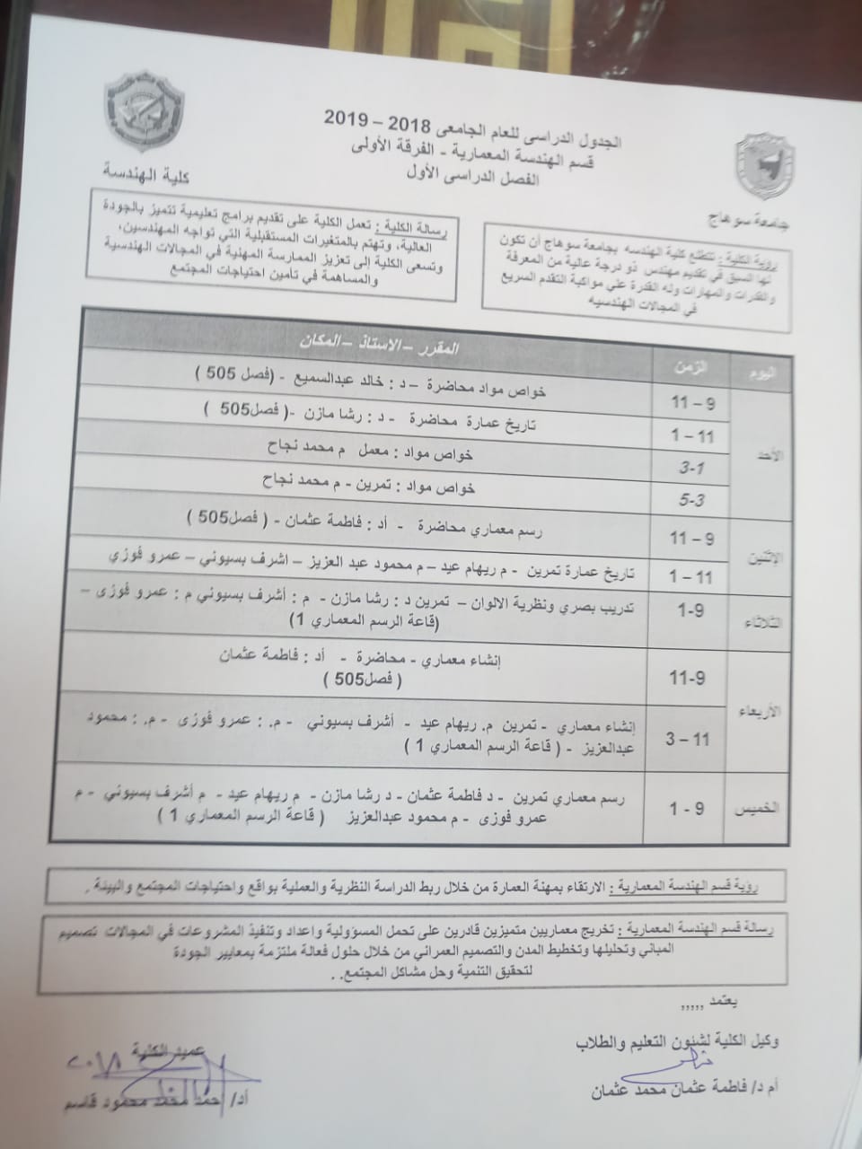 تم الانتهاء من جدول قسم الهندسة المعمارية للعام الجامعى 2018/2019 م كما تم الانتهاء من اعداد القوائم الخاصه بقسم الهندسة المعمارية الفرقة الاولى جدول قسم الهندسة المعمارية للعام الجامعى 2018/ 2019 تصفّح المقالات دعوة حفل استقبال الطلاب الجدد لعام الجامعى2018/2019قيام كلية الهندسة برحلة علمية لشركة النايل سات