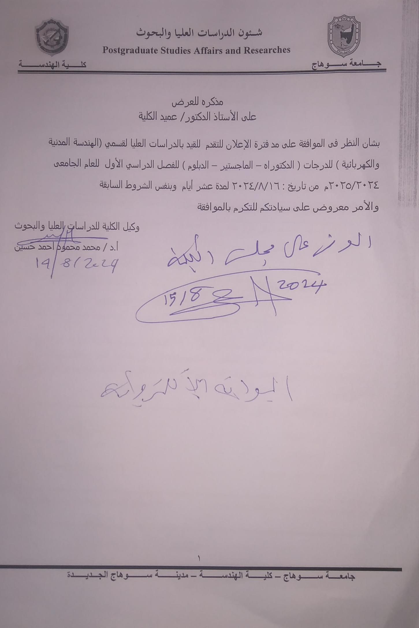 مد فترة التقديم بالدراسات العليا حتى يوم 26/8/2024