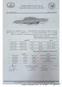 مواعيد فتح باب التقدم للقيد بالدراسات العليا بكلية الهندسة- جامعه سوهاج الترم التاني للعام الجامعي 2026/2025