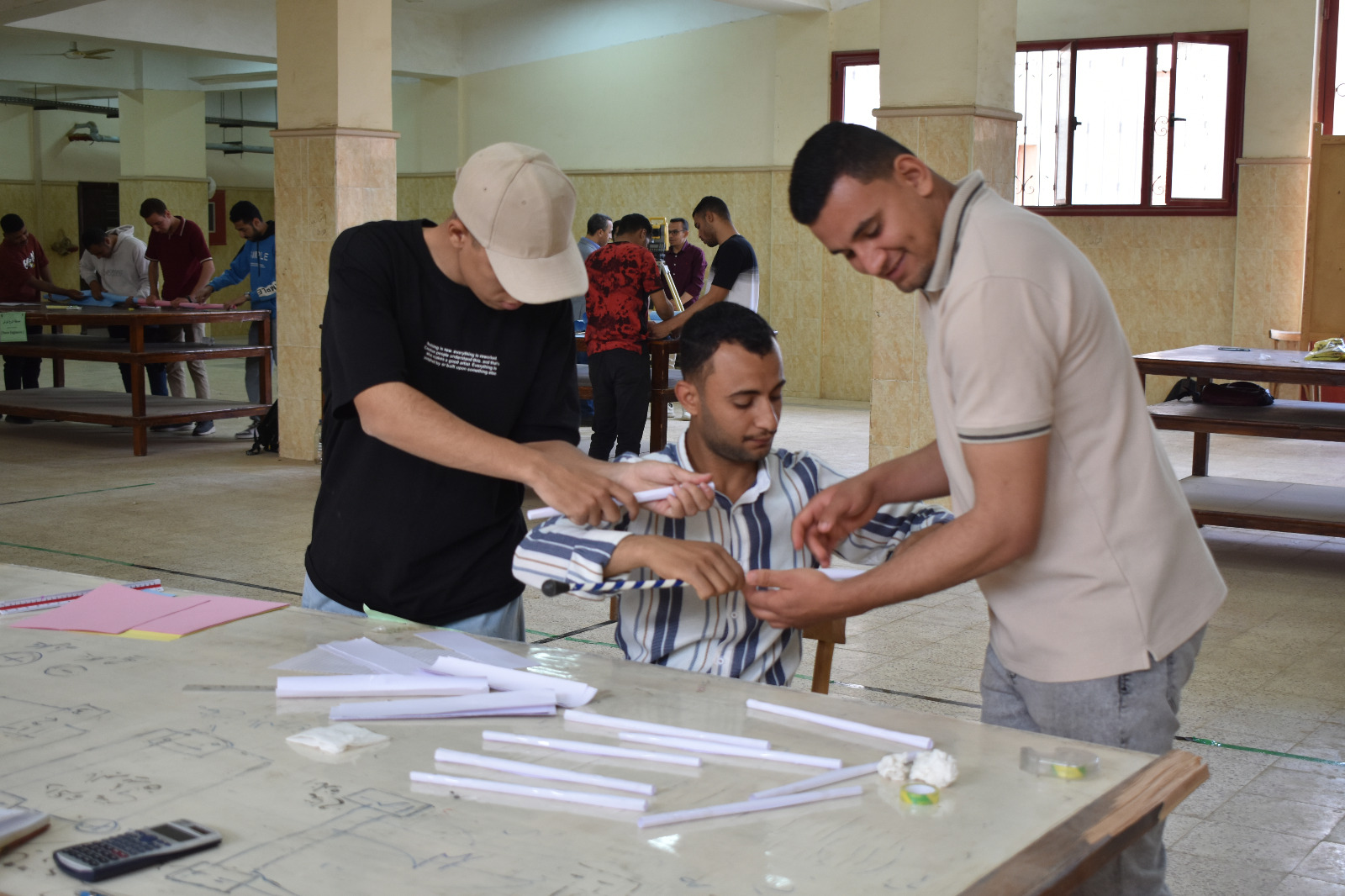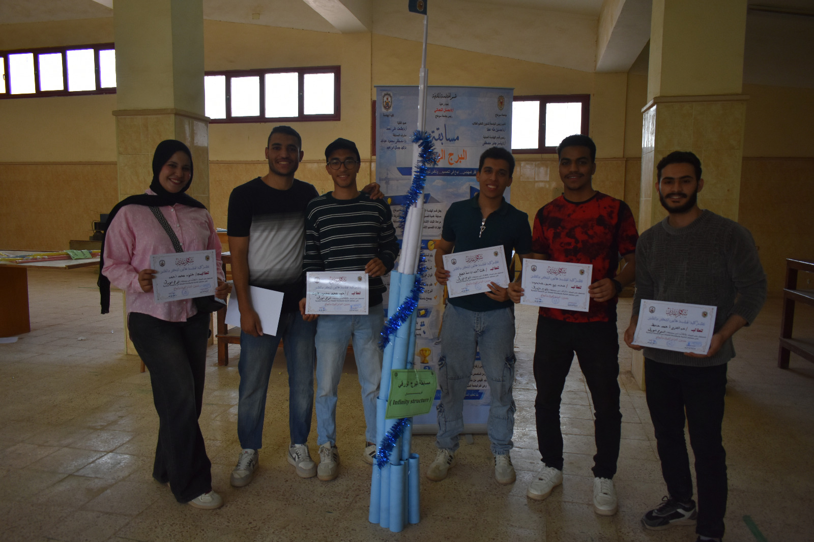 في اطار المسابقات العلمية التي تنظمها الكليه نظم قسم الهندسه المدنيه بالتعاون مع اداره رعايه الشباب بالكلية مسابقة علميه في تصميم البرج الورقي
