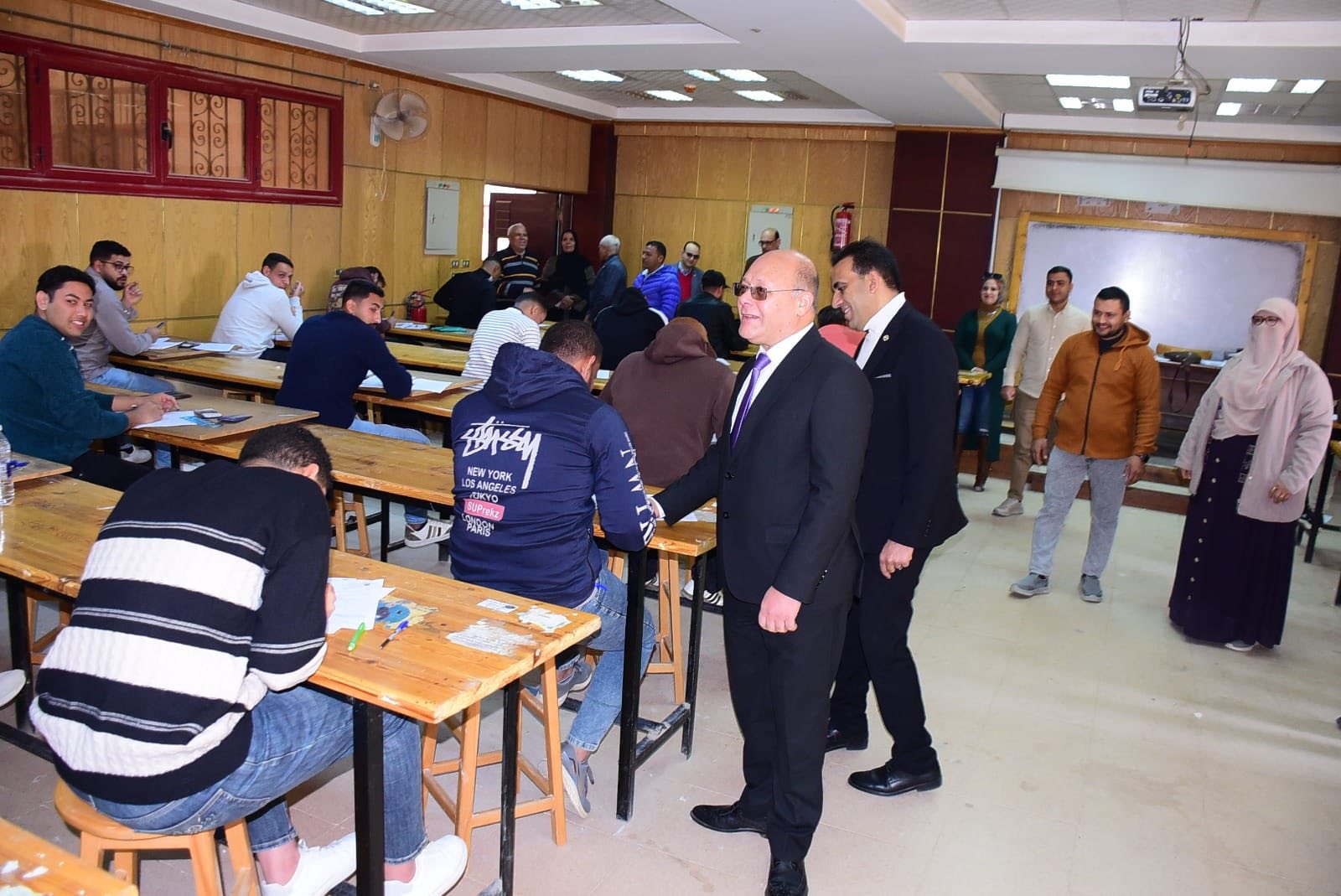 تابع الدكتور حسان النعماني رئيس جامعة سوهاج، سير أعمال امتحانات الفصل الدراسي الاول للعام الجامعي الجارى، بكلية الهندسة حيث تفقد عدد من لجان الامتحانات بمقر الجامعة الجديد، يرافقه الدكتور طلعت علي عميد الكلية والدمتور ممدوح عباس وكيل الكلية لشؤون خدمة المجتمع وتنمية البيئة.